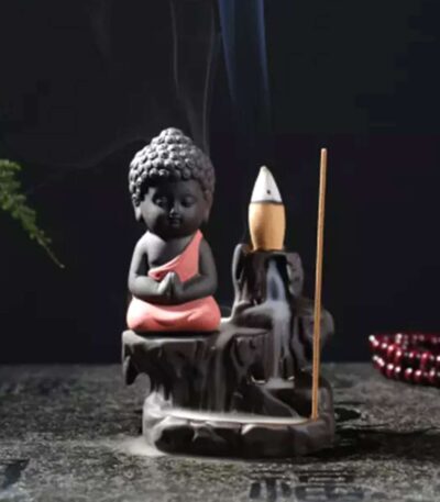 Meditating Monk Buddha Smoke Backflow Cone Incense Holder Decorative Showpiece with 10 Free Smoke Backflow Scented Cone Incenses