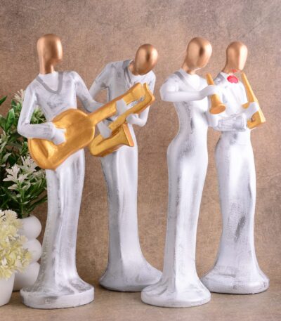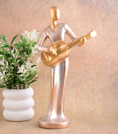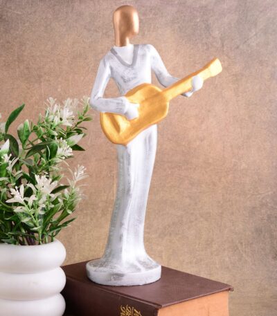 Modern metal musician golden white statue Resin figurine Contemporary art Music decor Metal sculpture, Modern home decor, Musician gift