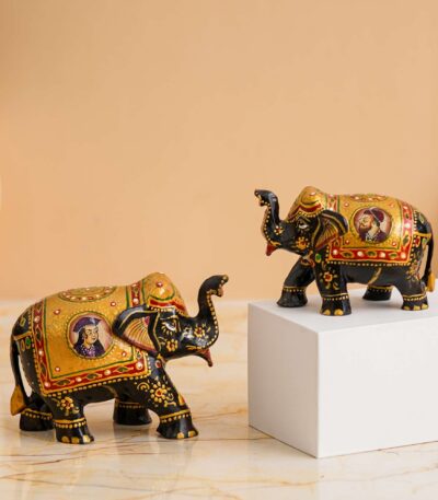 Rajasthani Tribal Handmade Brown ” Elephant ” Figured Wooden Statue Antique Design Elephant for Showpiece with Brown Colour-1