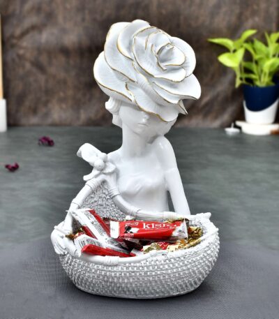 Lady with Basket Statue for Home Decor Showpiece, Shelves Decoration Showpiece, Office Table Decor Item