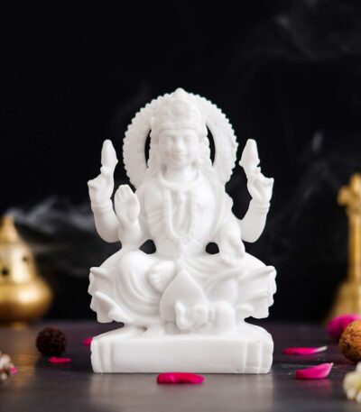 White Saraswati Idol – Maa Saraswati Statue, Genuine Saraswati Murti Small on Lotus with Veena – Handcrafted?
