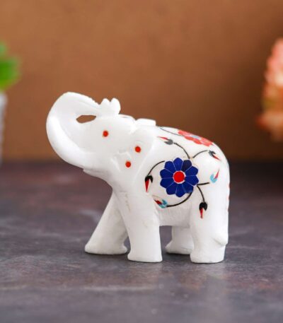 White Marble Elephant Showpieces Home Decor for Living Room, Table, Shelf for Vastu, Feng Shui, Office Decor, Gifting -1