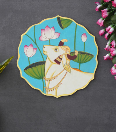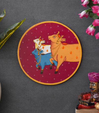 Oval Shaped Design Bamboo Hand Crafted Wall Hangings Of Bal Gopal With Holy Cow For Home D?cor | Bamboo Art For Wall Decor