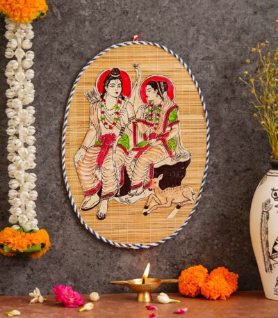 Oval Shaped Design Bamboo Hand Crafted Wall Hangings Of Shri Ram Ji With Janaki Ji For Home D?cor | Bamboo Art For Wall Decor