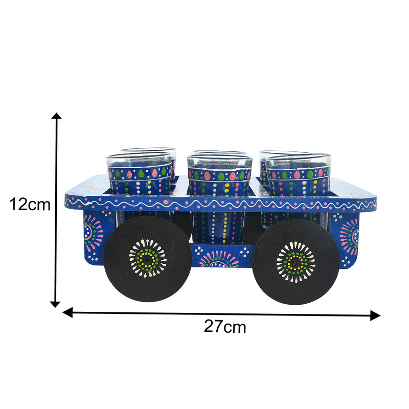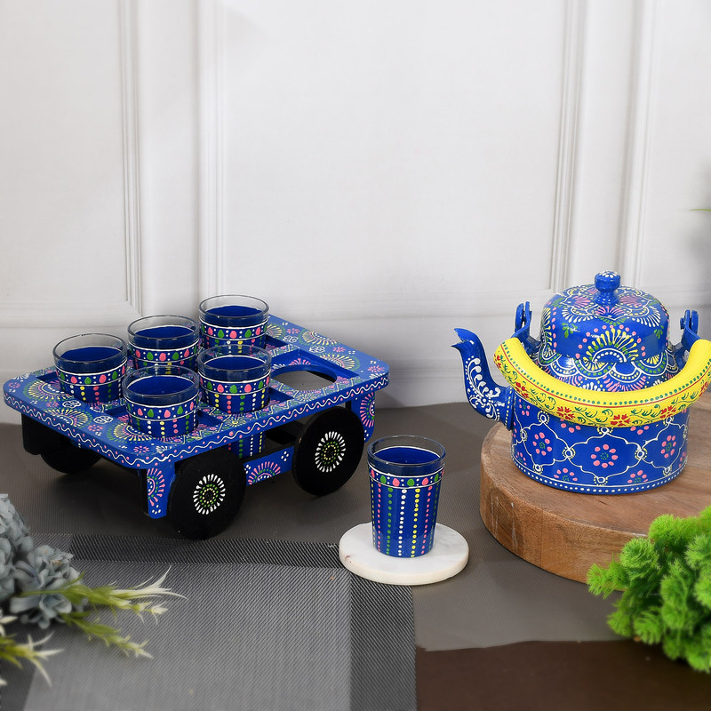 HandPainted Alluminium Tea Kettle with 6 Glasses and Wooden Tray For Home D?cor , Tea Party , Serving